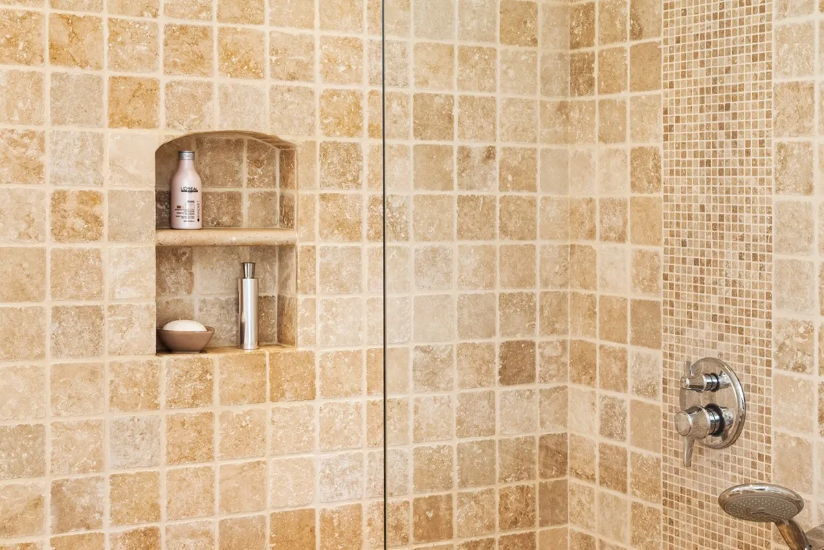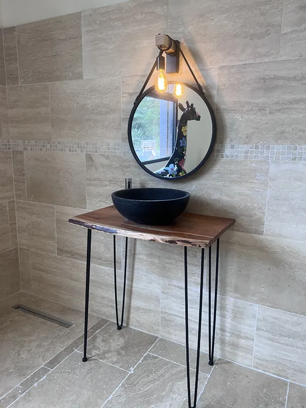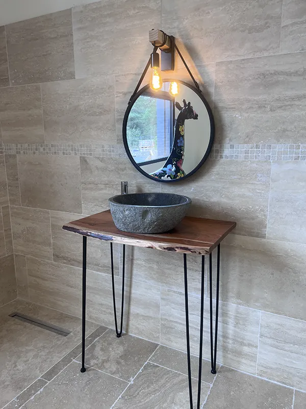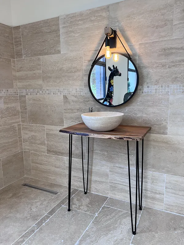 Salle de bain travertin vein cut