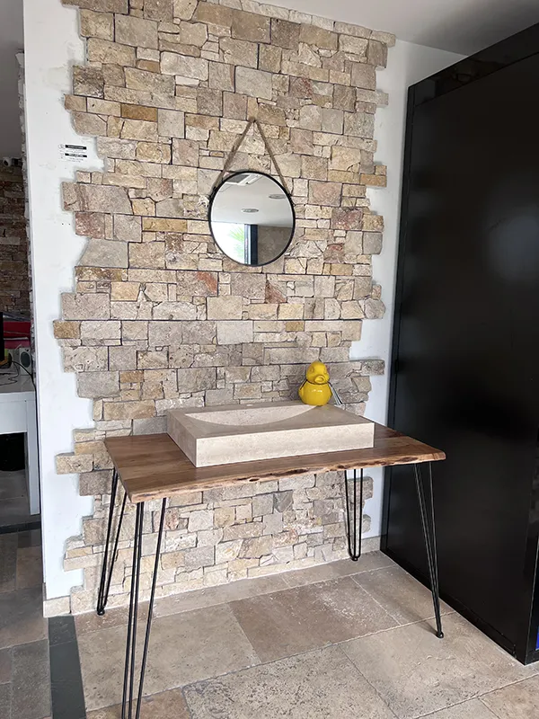 Pierre de Bali revêtement mural salle de bain